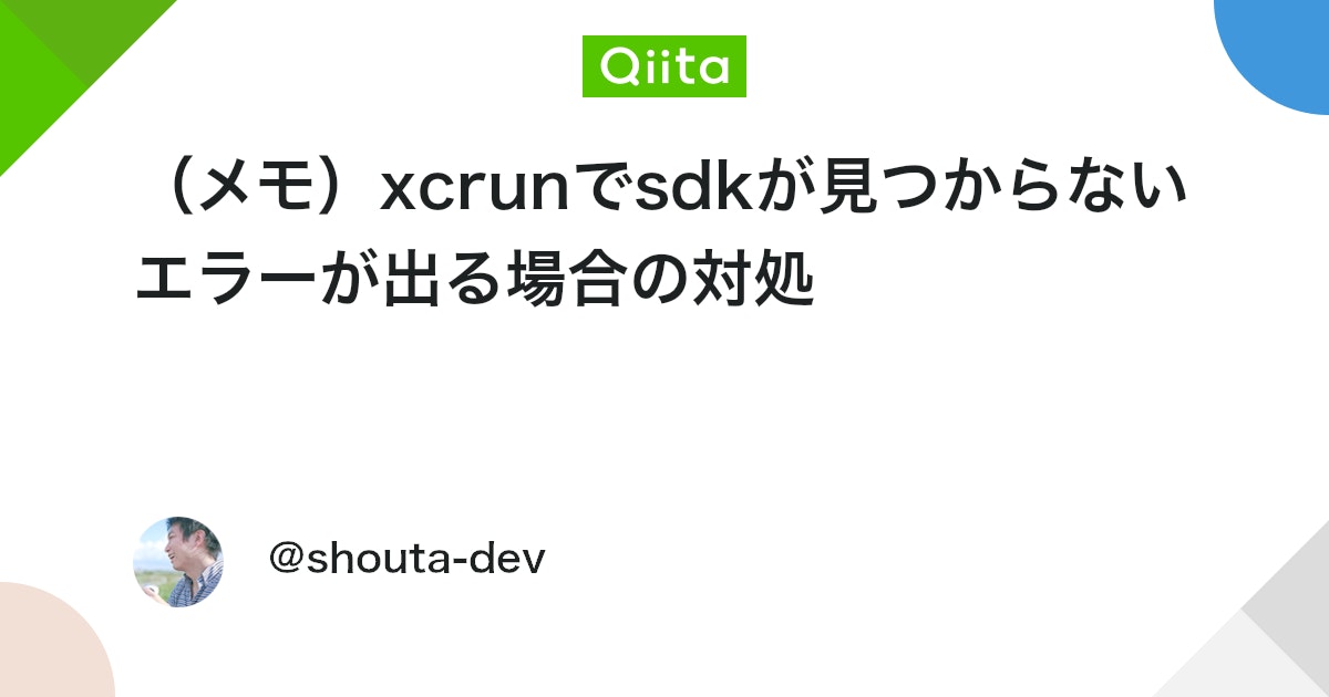 (メモ)xcrunでsdkが見つからないエラーが出る場合の対処@Qiita, shouta-dev様